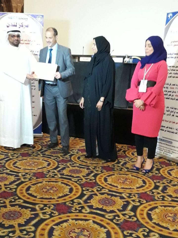 شارك الاستاذ المساعد الدكتور فواز موفق ذنون رئيس قسم الدراسات السياسية والاستراتيجية في مركزنا في المؤتمر العلمي الذي اقامه مركز لندن للدراسات والبحوث للفترة من 16-18 نيسان الجاري 2018 في العاصمة الاردنية عمان تحت عنوان "التداعيات الاجتماعية والاقتصادية للارهاب في ظل التحولات الاقليمية والدولية" ، اذ قدم الدكتور فواز بحثه الموسوم :دور النخب المثقفة في مواجهة ظاهرة الارهاب" .وقد تم تكريمه بشهادة تقديرية تثمينا لجهودة الطيبة بالمشاركة .ادارة الموقع تبارك للدكتور فواز موفق نشاطاته العلمية وتتمنى له مزيد من التوفيق والنجاح