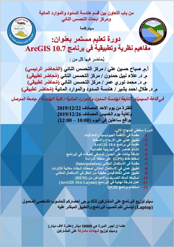 ضمن الحلقات النقاشية التي يقيمها مركز التحسس النائي تم إلقاء محاضرة جرى فيها شرح توضيحي حول آلية تحميل البحوث المنشورة من قبل الباحثين على موقع الوزارة بواسطة وحدة المستودع الرقمي التابعة لقسم الشؤون العلمية في رئاسة الجامعه وقد قام بإلقائها م. رئيس فيزياويين عمار أكرم عمر في مركز التحسس النائي .