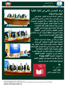 تم اختيار الاستاذ المساعد الدكتور عبدالرحمن رمزي قبع مدير مركز التحسس النائي وكالة ليكون عضوا في لجنة مناقشة رسالة الماجستير الموسومة (دراسة تحليلية لاختيار المواقع المثالية لإنشاء سدات ترابية باستخدام تقنيات GIS والمعايير المتعددة وفق نهج التسلسل الهرمي التقليدي AHP والتسلسل الهرمي الضبابي FAHP – قضاء الحويجة محافظة كركوك، كدراسة حالة) في الكلية التقنية الهندسية-كركوك بتاريخ 30/7/2025.
