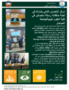 مركز التحسس النائي يشارك في لجنة مناقشة رسالة ماجستير في كلية العلوم البيئية/جامعة الموصل