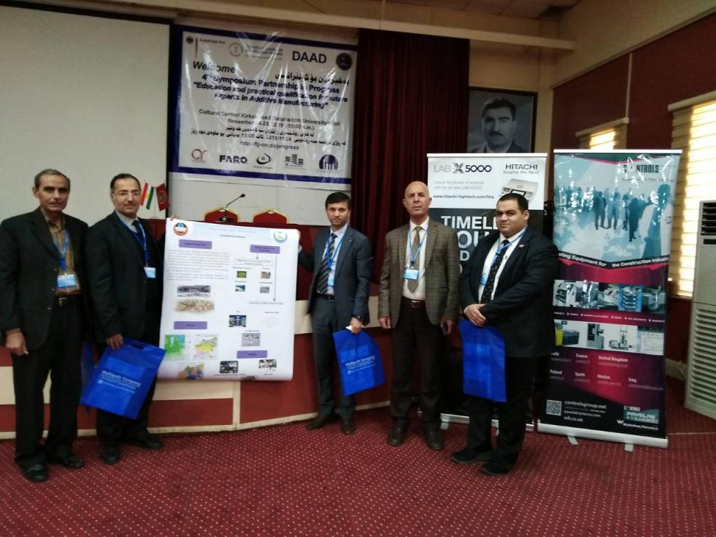 شارك منتسبي مركز التحسس النائي في المؤتمر الالماني العراقي الدولي الرابع المنعقد في كلية الهندسة /جامعة صلاح الدين/اربيل لمدة يومين 24-25/11/2019 بالتعاون مع جامعة فرايبريك الالمانية ومؤسسة DAAD العالمية. حيث اوفد كل من ا.م.د بسمان حميد وا.م.د رشيد سليم ود. محمد فوزي ود.عبدالرحمن رمزي قبع ود.طه عبدالهادي للمشاركة في اعمال المؤتمر الذي حضره القنصل الالماني في اربيل ورئيس جامعة صلاح الدين وبمشاركة ثمان جامعات عراقية اخرى بالاضافة الى الشركات ذات التوجه الهندسي والمعماري. وقد تم على هامش المؤتمر مناقشة كيفية ايجاد الية تعاون بين جامعة الموصل وجامعة فرايبريك الالمانية والجهات المشاركة الاخرى للاستفادة من خبرات وامكانيات الجامعة الالمانية اسوة بجامعة صلاح الدين. حيث تم افتتاح مختبر الطباعة الثلاثية الابعاد في القسم والذي جهزته الجامعة الالمانية بخمسة اجهزة ضخمة وحديثة تعليمية مجانا لقسم الهندسة هناك.