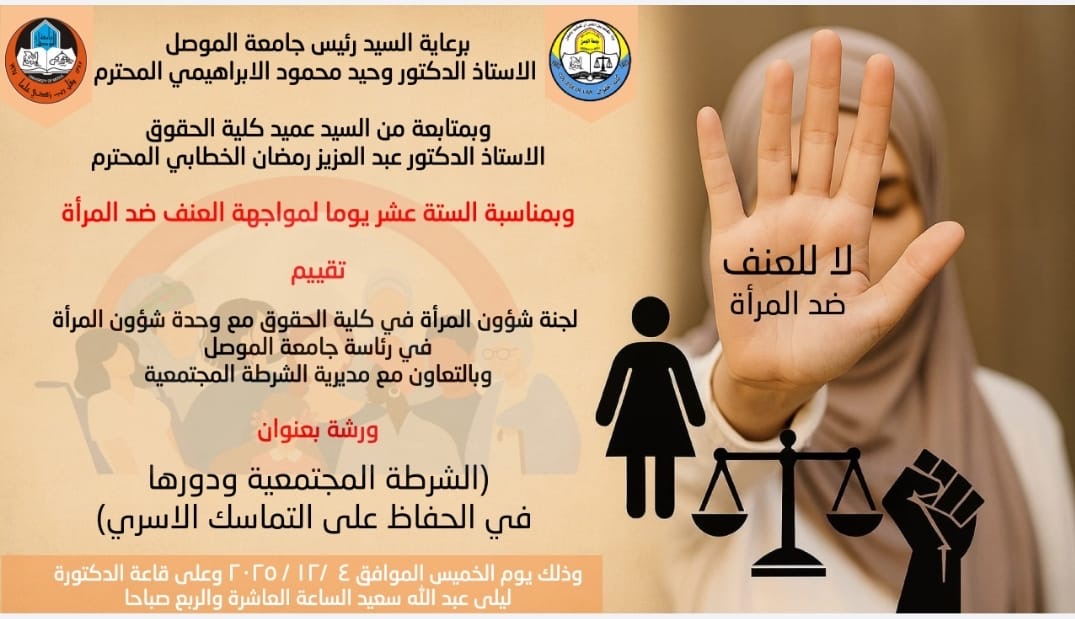 تعد كلية الحقوق من ابرز الكليات الانسانية في جامعة الموصل ، تأسست في العام الدراسي 1983-1984 ، وكانت تسمى بكلية القانون ، وقد استحدث فيها قسم السياسة وسميت بكلية القانون والسياسة ، ونتيجة التحاق قسم السياسة بكلية العلوم السياسة المستحدثة في ذلك الوقت اعيدت اليها التسمية السابقة ( كلية القانون ) بقسم علمي واحد هو قسم القانون ، وفي العام الدراسي 1993-1994 انشطر القسم العلمي الواحد الى فرعين علميين هما فرع القانون العام وفرع القانون الخاص ، وفي عام 2008 تغير اسم الكلية من كلية القانون الى كلية الحقوق إقرأ المزيد
