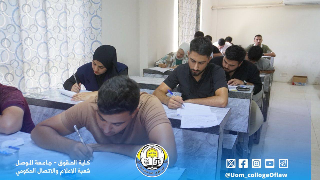 كلية الحقوق بجامعة الموصل تختتم يوم الاحد الموافق ٢٩ حزيران ٢٠٢٥ امتحانات نهاية الفصل الدراسي الثاني لطلبة الدراسة الاولية/ المرحلة الاولى المقبولين في كليتنا للعام الدراسي الجاري ٢٠٢٤-٢٠٢٥ .