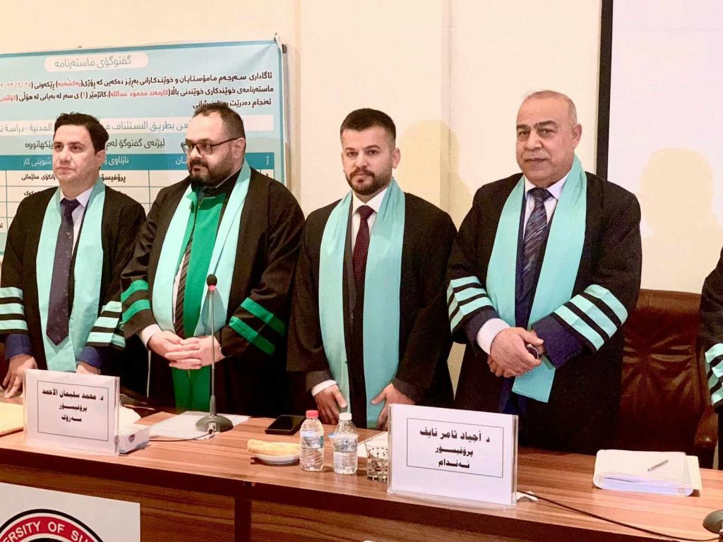 ترأس لجنة المناقشة الاستاذ الدكتور محمد يونس يحيى وعضوية الاستاذ الدكتور طلعت اجياد لجي والاستاذ المساعد الدكتور وسام نعمت ابراهيم السعدي والاستاذ المساعد الدكتور زياد عبدالوهاب عبدالله والاستاذ المساعد الدكتور محمد ناظم داؤد وعضوية واشراف الاستاذ الدكتور خلف رمضان محمد