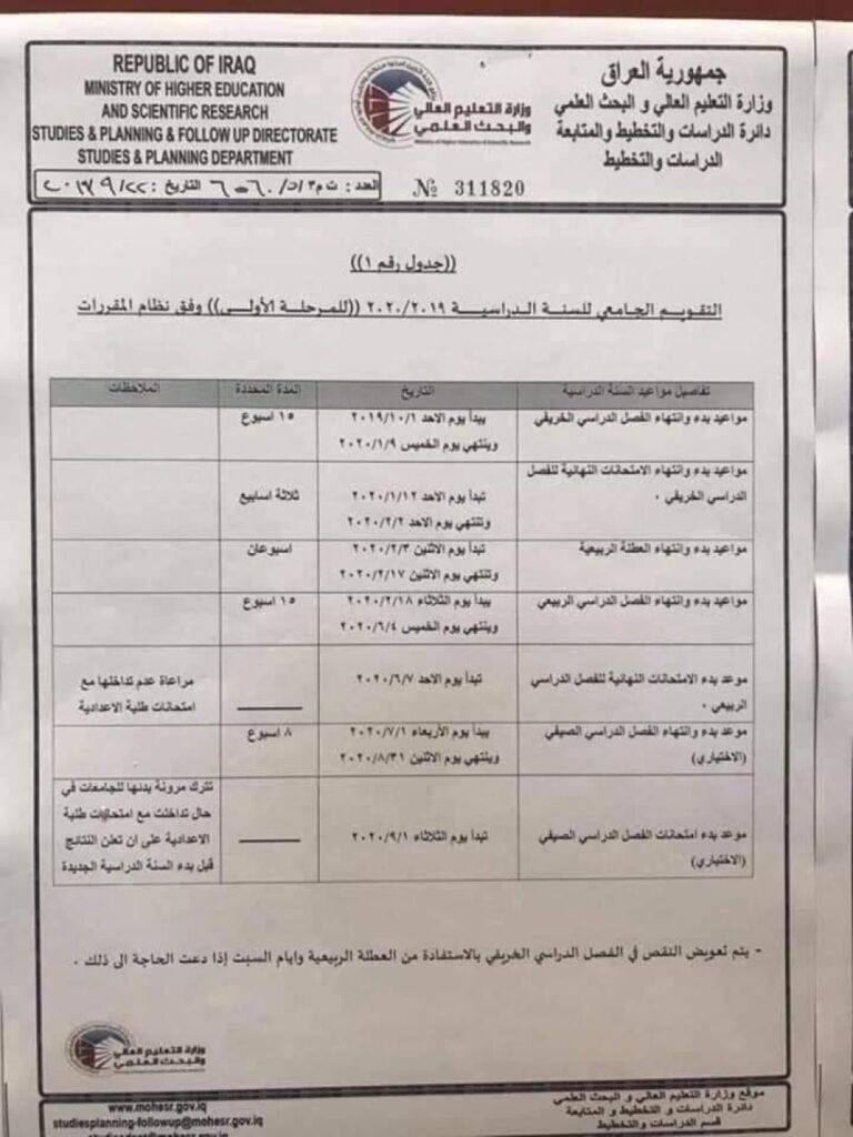 انطلاق التقويم الجامعي للسنة الدراسية 2019-2020