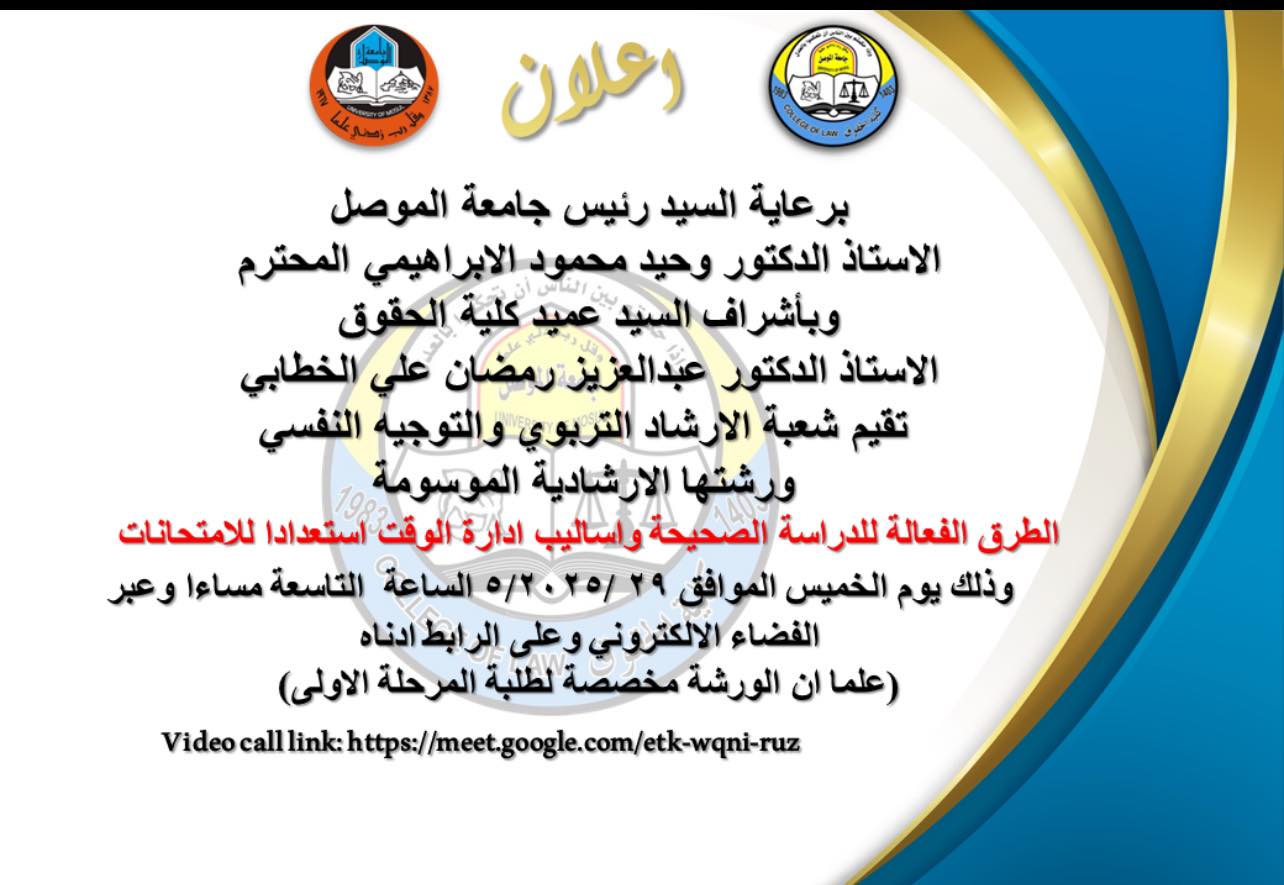 ورشة ارشادية وعلى رابط برنامج ال meet