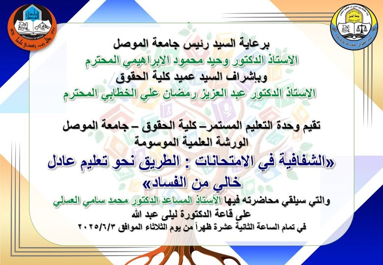 ورشة علمية لوحدة التعليم المستمر في كلية الحقوق بجامعة الموصل والموسومة