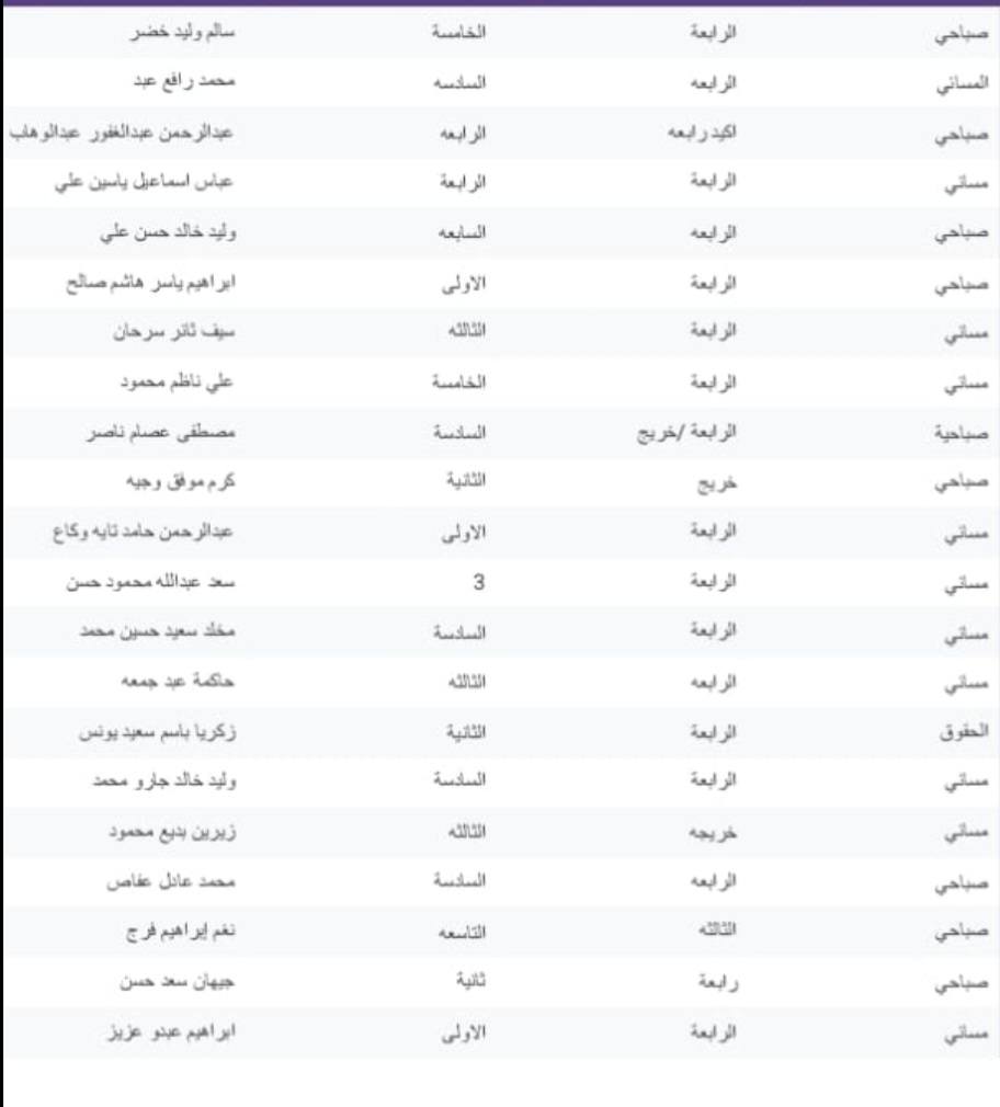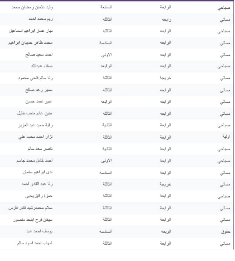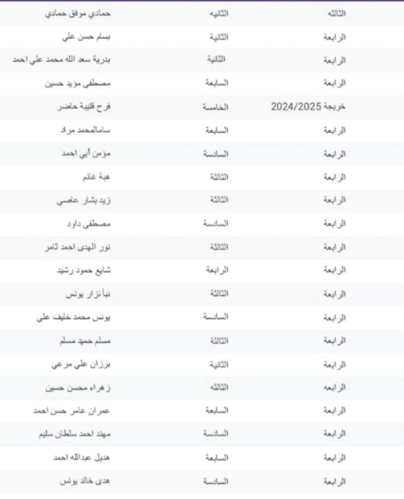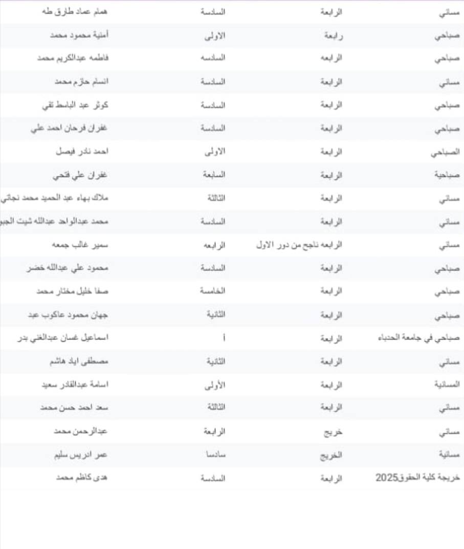 طلبتنا الاكارم الواردة اسمائهم في القوائم أدناه تنسب حضوركم الى مبنى رئاسة محكمة استئناف /نينوى في العاشرة من صباح يوم الاثنين الموافق ٢٥ حزيران ٢٠٢٥ لغرض تنفيذ الزيارة الميدانية التأهيلية التي تقيمها وحدة التأهيل والتوظيف والمتابعة في كليتنا .