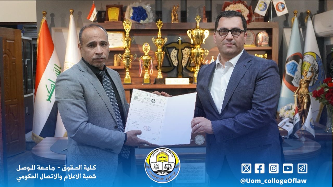 تتقدم عمادة كلية الحقوق بجامعة الموصل ممثلة بالسادة رئيس اعضاء مجلس الكلية وكادريها العلمي والاداري وطلبتها بأطيب التهاني والتبريكات للمدرس الدكتور عبدالله ذنون الصواف بمناسبة [إقرأ المزيد]
