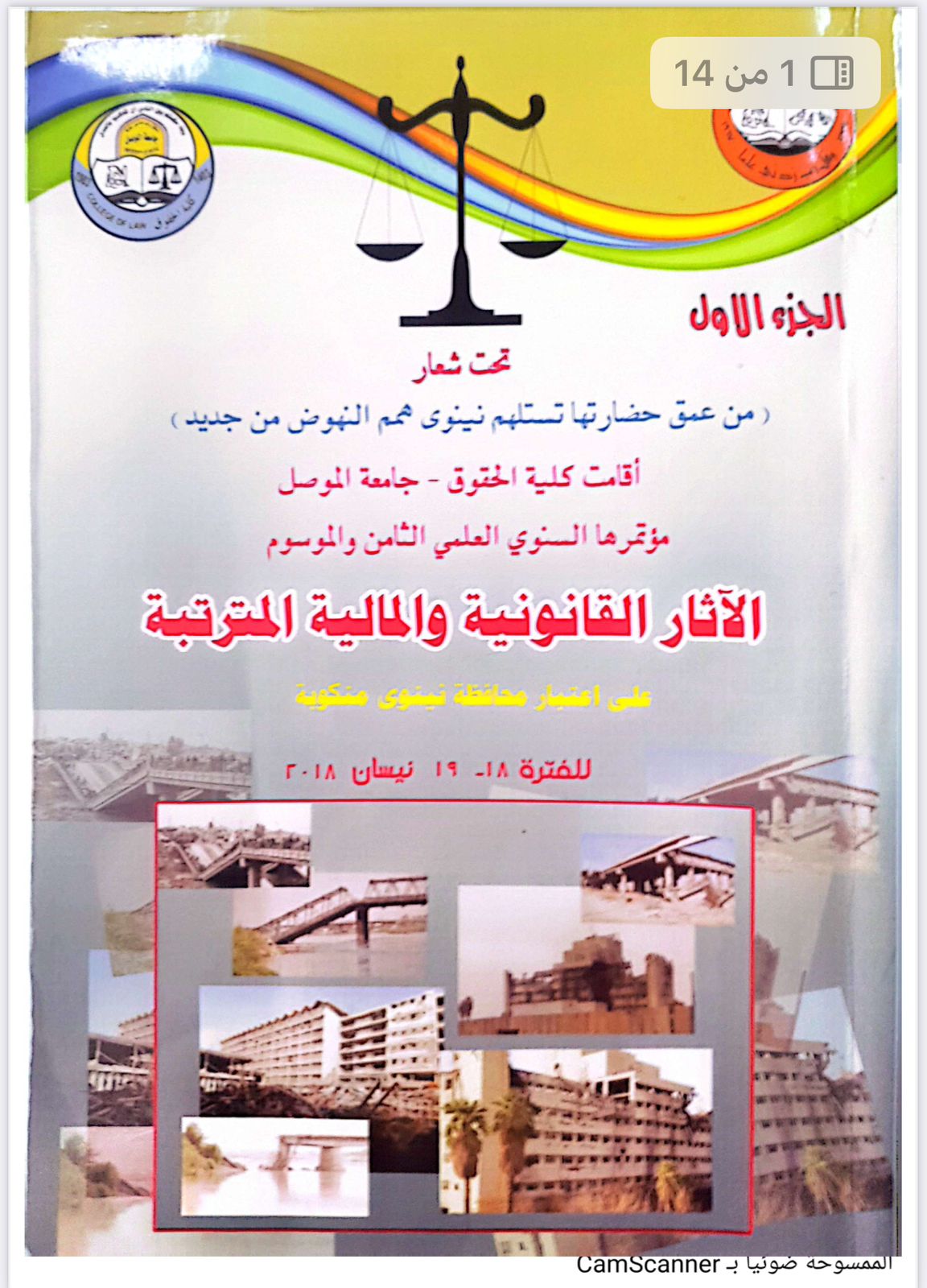المؤتمر العلمي الثامن الموسوم الاثار القانونية والمالية المترتبة على اعتبار محافظة نينوى منكوبة للفترة من 18/19 نيسان 2018