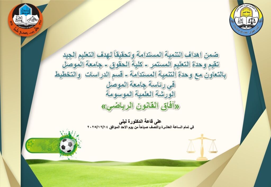 ورشة علمية بعنوان " افاق القانون الرياضي "