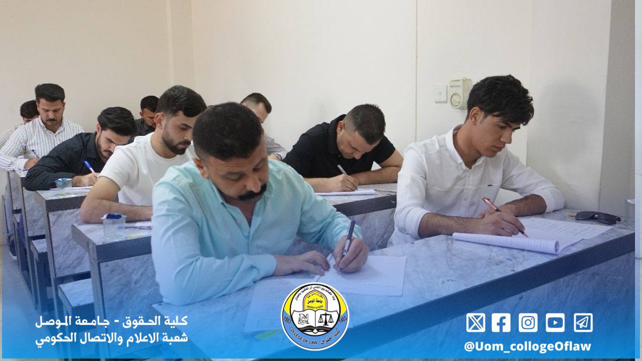 استمرار امتحانات نهاية الفصل الدراسي الثاني في كلية الحقوق بجامعة الموصل لطلبة الدراسات العليا ( الماجستير والدكتوراه ) وامتحانات طلبة الدراسة الأولية / المرحلة الاولى للعام الدراسي الجاري ٢٠٢٤-٢٠٢٥