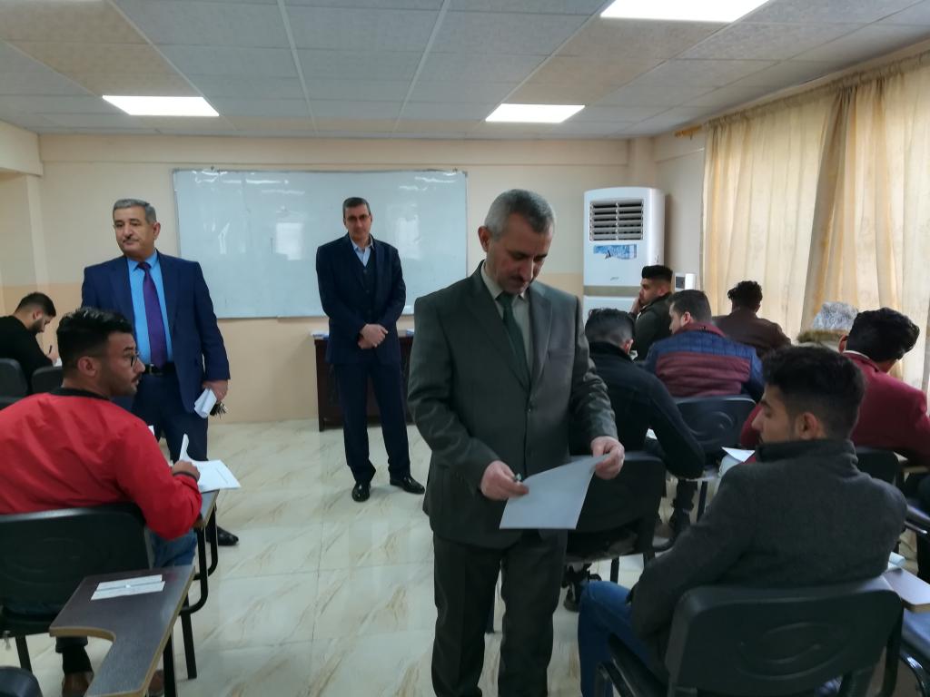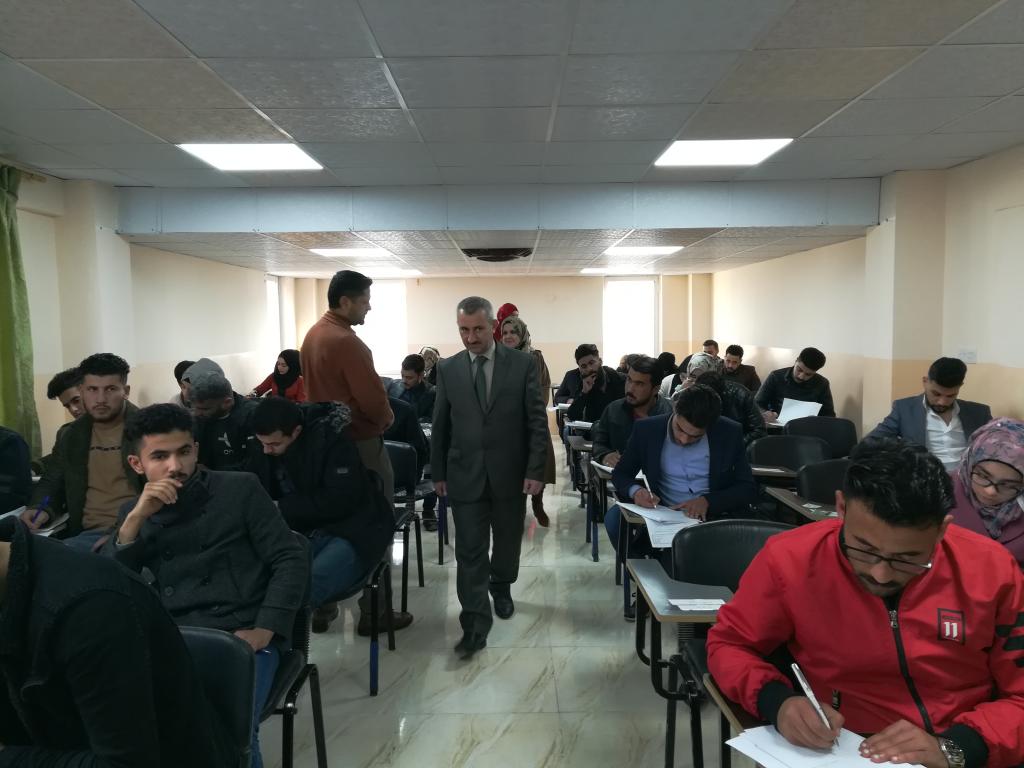 باشراف الدكتور (عمار سعدون حامد) المحترم عميد الكلية وبمتابعة السادة اعضاء مجلسه ورئيس واعضاء اللجنة الامتحانية المركزية واللجان الفرعية فقد ابتدأت في كليتنا يوم الخميس الموافق 30/1/2020 امتحانات نصف السنة للدراسة الاولية (صباحي/مسائي) للعام الدراسي 2019/2020 وقد تفقد عميد الكلية يرافقه معاونه للشؤون الادارية والمالية الدكتور( خلف رمضان محمد) المحترم ومعاونه للشؤون العلمية والطلابية الدكتور ( وسام نعمت ابراهيم ) المحترم سير الامتحانات التي جرت بانسيابية عالية وفقا للقوانين والانظمة والتعليمات الامتحانية المحددة من قبل وزارة التعليم العالي والبحث العلمي ورئاسة جامعة الموصل .
