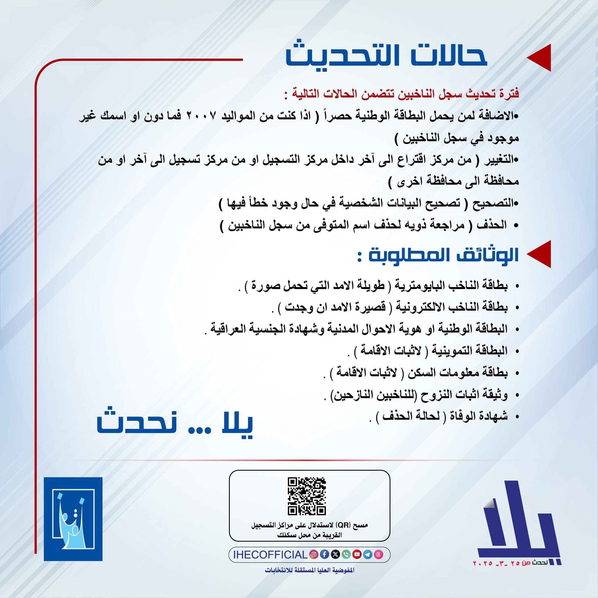 من اجل غدٍ افضل. سارعوا الى اقرب مركز تسجيل. لتحديث بياناتكم البايومترية