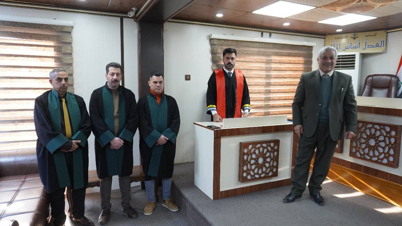 بإشراف ومتابعة الاستاذ المساعد الدكتور وسام نعمت ابراهيم السعدي عميد كلية الحقوق والسادة اعضاء مجلس الكلية ، فقد القى الاستاذ الدكتور محمد عباس حمودي احد تدريسيي فرع القانون العام يوم الاثنين الموافق ٢٤ شباط ٢٠٢٥ محاضرة تطبيقية على طلبة الدراسة الاولية بين فيها الخطوات الواجب اتباعها عند البدء بإجراءات المحاكمة التي تأتي في سياق مادة المحكمة التطبيقية التي تعد إحدى الدروس العملية لطلبة الكلية التي تهدف الى تطبيق المحاضرات النظرية على ارض الواقع وتهيئة الطلبة للانخراط بالواقع العملي وتطبيق ما تم دراسته من محاضرات نظرية بصورة عملية ، وتحظى محاضرات المحكمة التطبيقية بإهتمام متميز من عمادة الكلية التي سعت الى تشكيل قاعة خاصة تضمنت كافة مستلزمات المحكمة الافتراضية ، ويأتي ذلك ضمن الدراسات والفعاليات والنشاطات الطلابية الرامية إلى ترسيخ الواقع النظري على ارض الواقع .