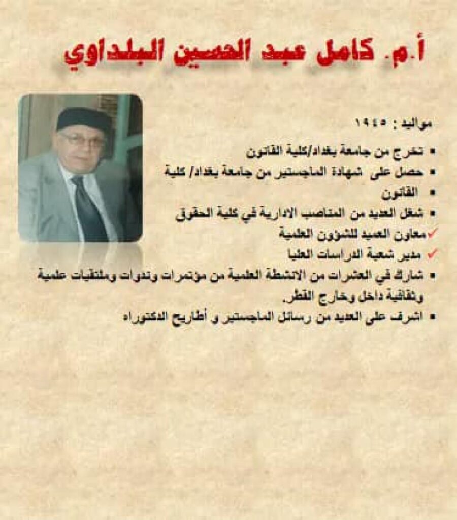 شكرا وعرفانا لاساتذة ومنتسبي جامعتنا العزيزة وعلى ارض جامعة الموصل وفي رحاب قاعة المنتدى العلمي والادبي وبحضور الاستاذ الدكتور قصي كمال الدين الاحمدي المحترم رئيس جامعة الموصل والسادة اعضاء مجلس جامعة الموصل ورؤساء جامعات محافظة نينوى الحاليين والسابقين وعدد من الشخصيات العلمية والاكاديمة من منتسبي جامعتنا العريقة فقد جرى يوم الثلاثاء الموافق 2021/1/26 تكريم الاستاذ الدكتور عامر عبدالفتاح الجومرد المحترم رئيس فرع القانون العام في كليتنا سابقا بشهادة تقديرية من رئاسة جامعة الموصل تسلمها نيابة عنه الدكتور خلف رمضان محمد ، وبدورها تتوجه عمادة كليتنا متمثلة بالدكتور وسام نعمت ابراهيم السعدي المحترم عميد الكلية والسادة اعضاء مجلس الكلية وكادريها العلمي والاداري بأطيب التهاني والتبريكات للدكتور عامر عبدالفتاح الجومرد متمنين له المزيد من التميز والابداع