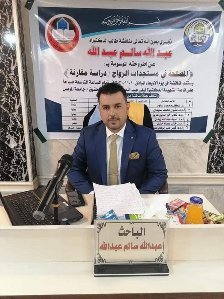 نظرا للجهود المتميزة المبذولة من قبل الدكتور نشوان محمد سليمان/كلية النور الجامعة في دعم الانشطة العلمية والثقافية والطلابية في كليتنا ومشاركته في مناقشة طالب الماجستير في فرع القانون الخاص عبدالله سالم عبدالله ، فقد تم تكريمه بشهادة تقديرية من قبل الاستاذ المساعد الدكتور وسام نعمت ابراهيم السعدي عميد الكلية ، وبدورها تهنئ عمادة الكلية والسادة اعضاء مجلس الكلية وكادريها العلمي والاداري وطلبتها الدكتور نشوان محمد سليمان متمنين له المزيد من العطاء العملي والابداع الاكاديمي خدمة لمسيرة العلم والمعرفة في كليتنا العزيزة جامعتنا العريقة وعراقنا الآبي .