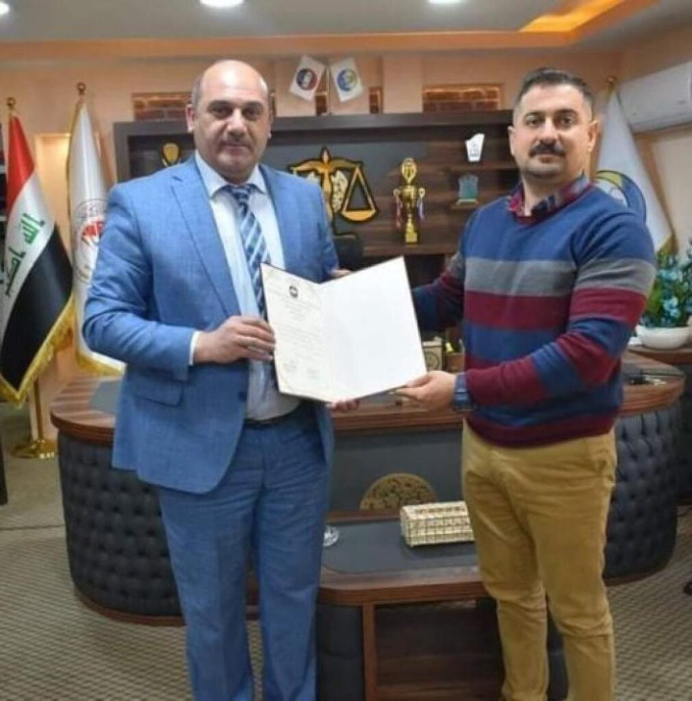 نظرا للجهود المتميزة المبذولة من قبل الدكتور قصي علي عباس/كلية الحقوق جامعة النهرين في دعم الانشطة العلمية والثقافية والطلابية في كليتنا ومشاركته في مناقشة طالب الماجستير في فرع قانون حقوق الانسان احمد زكي حبيب ، فقد تم تكريمه بشهادة تقديرية من قبل الاستاذ المساعد الدكتور وسام نعمت ابراهيم السعدي عميد الكلية ، وبدورها تهنئ عمادة الكلية والسادة اعضاء مجلس الكلية وكادريها العلمي والاداري وطلبتها الدكتور قصي علي عباس متمنين له المزيد من العطاء العلمي والابداع الاكاديمي خدمة لمسيرة العلم والمعرفة في كليتنا العزيزة جامعتنا العريقة وعراقنا الآبي .