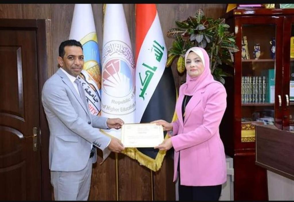 نظرا للجهود المتميزة المبذولة من قبل الدكتورة نبأ محمد عبد/كلية الحقوق بجامعة تكريت في دعم الانشطة العلمية والثقافية والطلابية في كليتنا ومشاركتها في مناقشة طالب الماجستير في فرع القانون الخاص محمد احمد حميد ، فقد تم تكريمها بشهادة تقديرية من قبل الاستاذ المساعد الدكتور وسام نعمت ابراهيم السعدي عميد الكلية ، وبدورها تهنئ عمادة الكلية والسادة اعضاء مجلس الكلية وكادريها العلمي والاداري وطلبتها الدكتورة نبأ محمد عبد متمنين لها المزيد من العطاء العملي والابداع الاكاديمي خدمة لمسيرة العلم والمعرفة في كليتنا العزيزة جامعتنا العريقة وعراقنا الآبي .