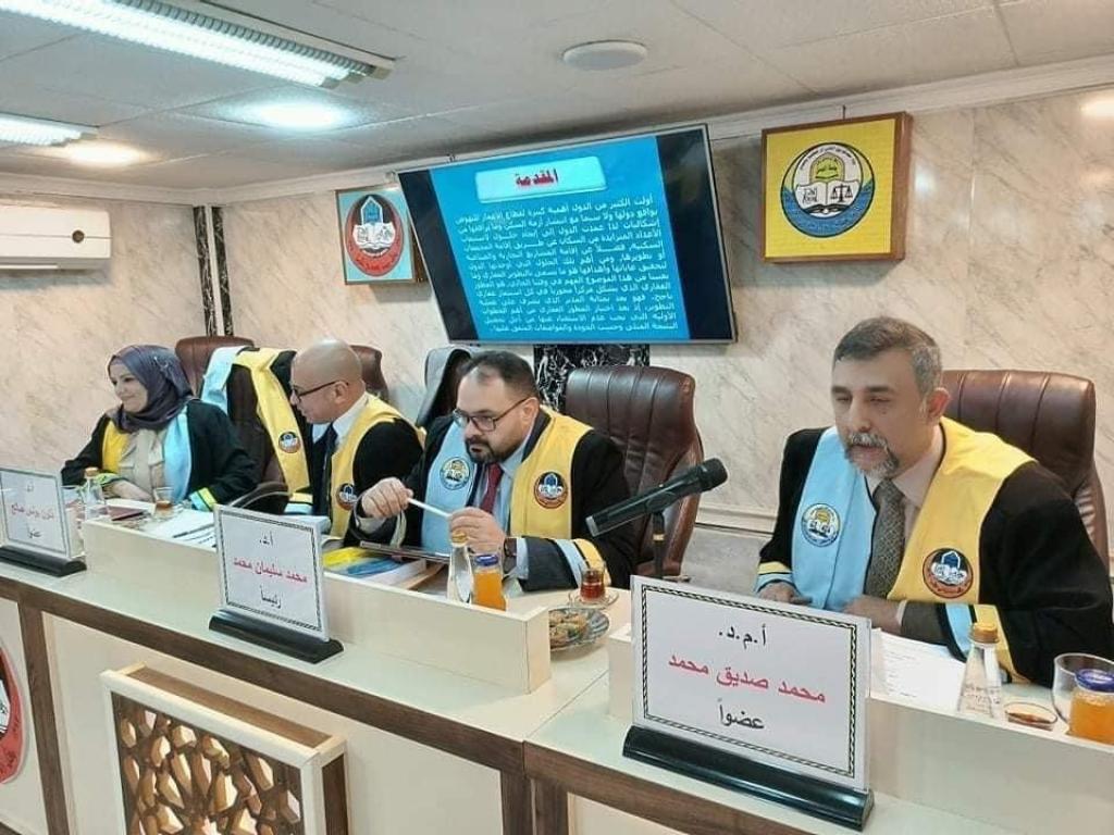 ترأس لجنة المناقشة الاستاذ الدكتور محمد سليمان محمد وعضوية الاستاذ الدكتور ذنون يونس صالح والاستاذ المساعد الدكتور محمد صديق محمد عبدالله وعضوية واشراف الاستاذ الدكتور زينة غانم يونس .
