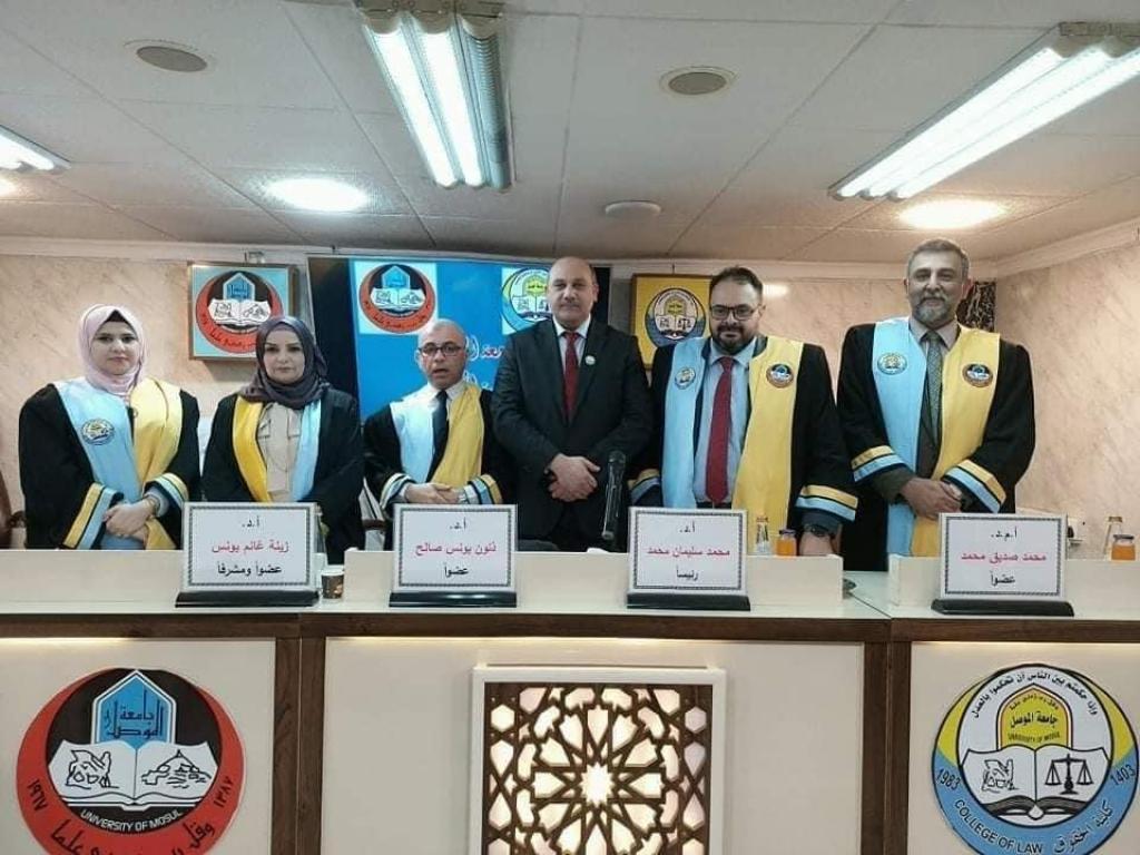 ناقش فرع القانون الخاص في كلية الحقوق بجامعة الموصل رسالة ماجستير عن تنظيم المركز القانوني للمطور العقاري/دراسة مقارنة ، يوم الخميس الموافق ١٣ كانون الثاني ٢٠٢٢ ، حضر جانبا منها الاستاذ المساعد الدكتور وسام نعمت ابراهيم السعدي عميد كلية الحقوق والاستاذ المساعد الدكتور طارق محمد طيب عميد كلية العلوم السياسية وعدد من اعضاء مجلس كلية الحقوق وتدريسييها .
