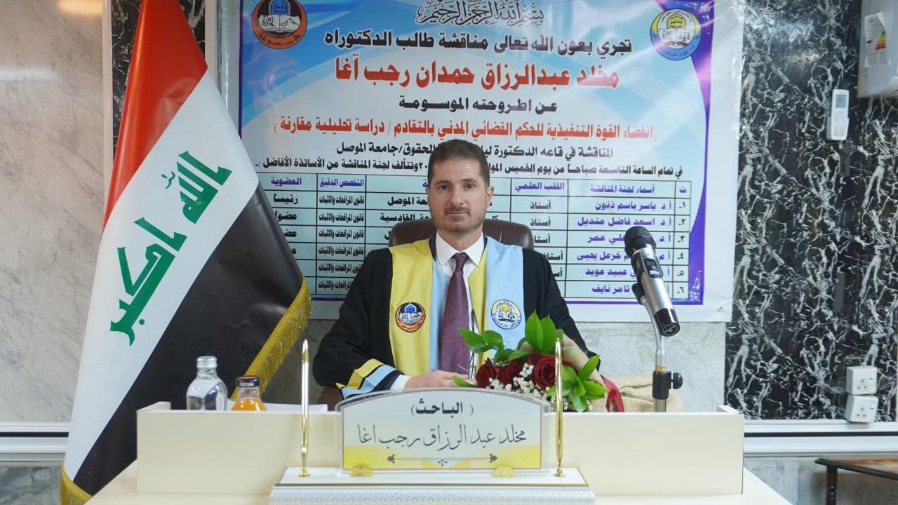 كجزء من متطلبات نيل شهادة الماجستير في فرع القانون الخاص وتألفت لجنة المناقشة من :