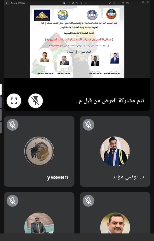 برئاسة الدكتور قيدار عبدالقادر صالح وعضوية الدكتور احمد محمود الربيعي والدكتور علي محمد رضا فقد اجتمعت يوم الموافق ١٢ تشرين الثاني ٢٠٢٣ لجنة السيمنارات لفرع القانون العام وجرى مناقشة مشروع تسجيل رسالة طالبة الماجستير فاتن جاسم محمد باشراف الدكتور نكتل ابراهيم عبدالرحمن وحضور اعضاء الهيئة التدريسية للفرع ، وبعد الاطلاع على اهمية الدراسة وهيكليتها واشكالياتها اوصت اللجنة بقبول تسجيل العنوان بعد ادخال بعض التعديلات عليه ، علما ان دراسة الطالبة في فرع القانون العام .