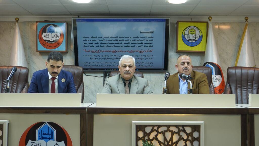 برئاسة الدكتور محمد يونس يحيى وعضوية الدكتور صهيب خالد جاسم والدكتورة سهى حميد سليم والدكتورة سهاد عبدالجمال عبدالكريم فقد اجتمعت يوم الثلاثاء الموافق ١٢ تشرين الثاني ٢٠٢٤ لجنة السيمنارات لفرع قانون حقوق الانسان وجرى مناقشة مشروع تسجيل رسالة طالبة الماجستير وجدان حازم جبرو باشراف الدكتور خلف رمضان محمد وحضور اعضاء الهيئة التدريسية للفرع ، وبعد الاطلاع على اهمية الدراسة وهيكليتها واشكالياتها اوصت اللجنة بقبول تسجيل العنوان بعد ادخال بعض التعديلات عليه ، علما ان دراسة الطالبة في فرع قانون حقوق الانسان .