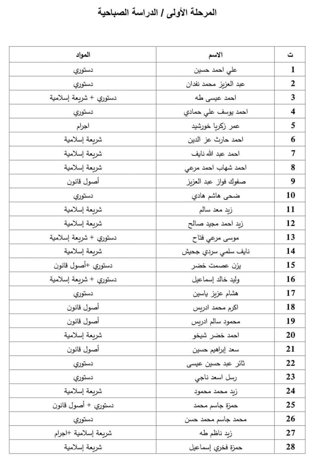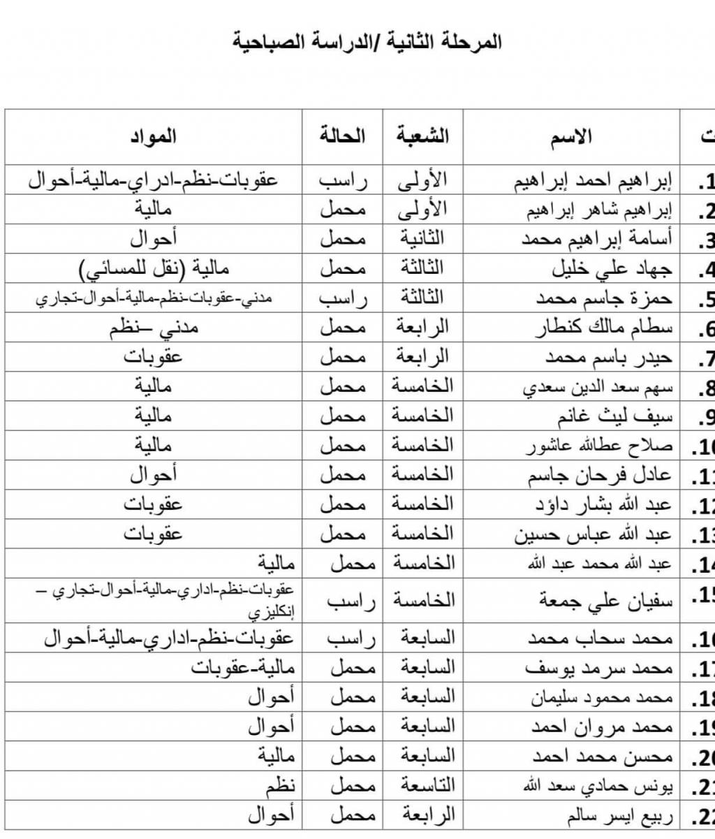 قوائم باسماء الطلبة المشمولين بالامتحانات التكميلية – كلية الحقوق