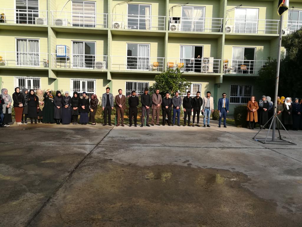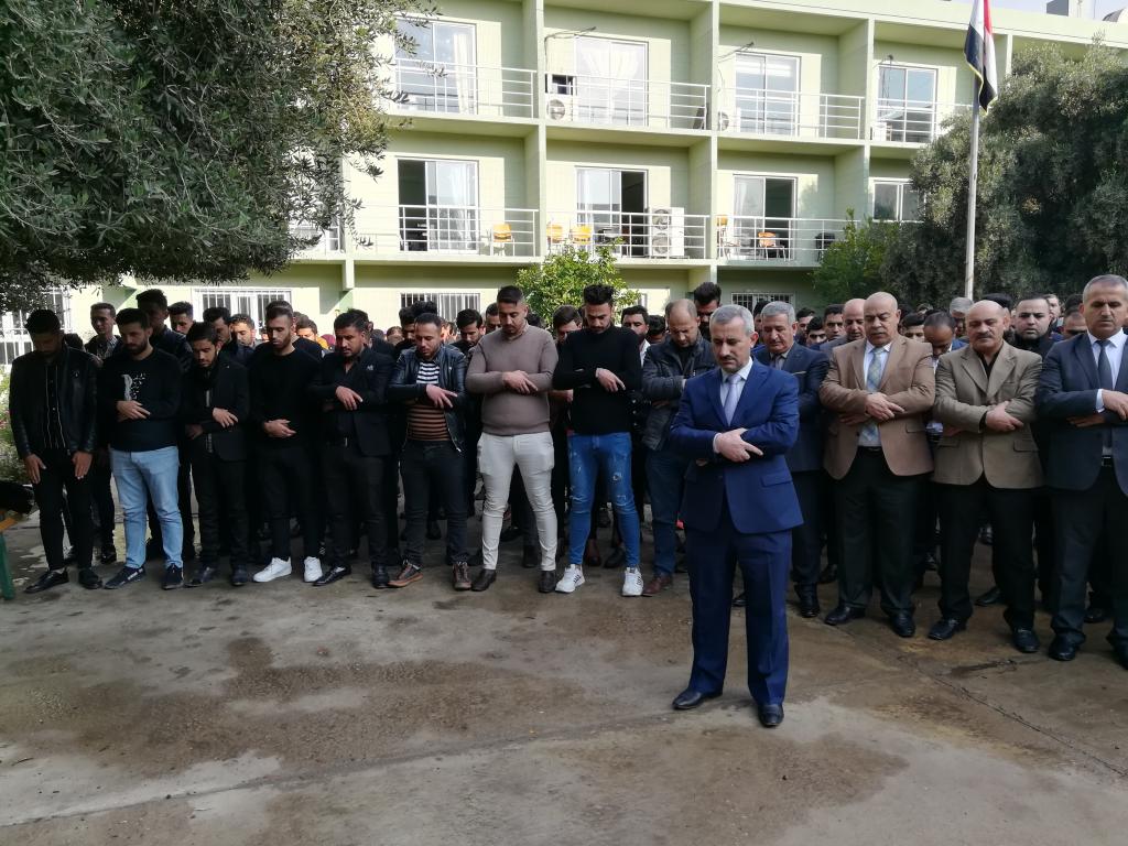 نظمت كلية الحقوق صباح هذا اليوم الاحد الموافق 1/12/2019 وقفة جماعية لأساتذة الكلية وموظفيها وطلبتها خصصت لإقامة صلاة الغائب وتلاوة سورة الفاتحة على ارواح شهداء العراق الابرار وقد القى السيد عميد الكلية الدكتور (خلف رمضان محمد) كلمة اشاد فيها لتضحيات الشهداء الابرار وتمنى الشفاء العاجل للجرحى في محافظاتنا العزيزة