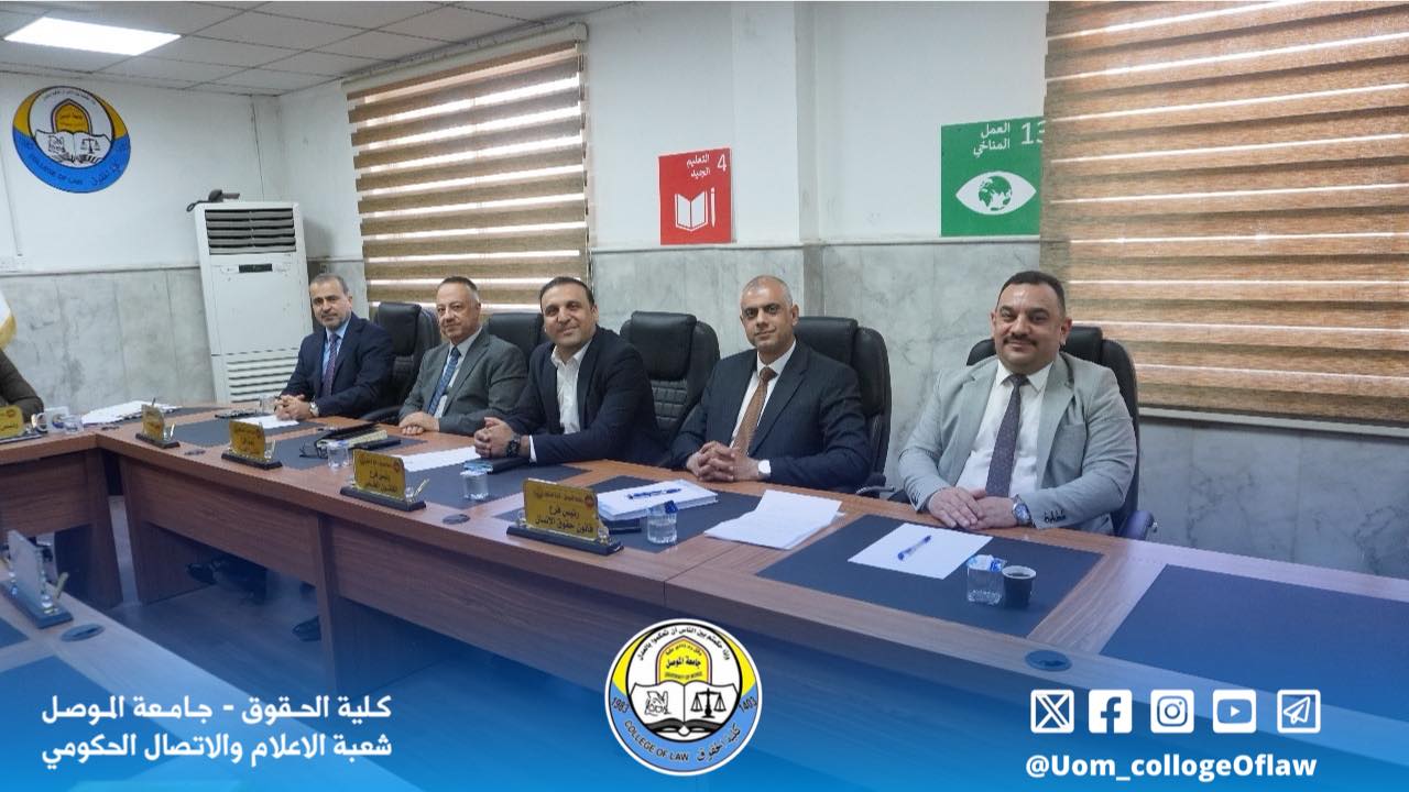 ترأس الاستاذ الدكتور عبدالعزيز رمضان علي الخطابي يوم الخميس الموافق الثالث من تموز ٢٠٢٥ اجتماعا لمجلس الكلية بحضور كافة اعضائه نقل فيه توجيهات السيد رئيس مجلس الجامعة واطلع المجلس على العديد من المسائل المطروحة على جدول اعماله متخذا بشأنها القرارات ذات الصلة وفق الضوابط .