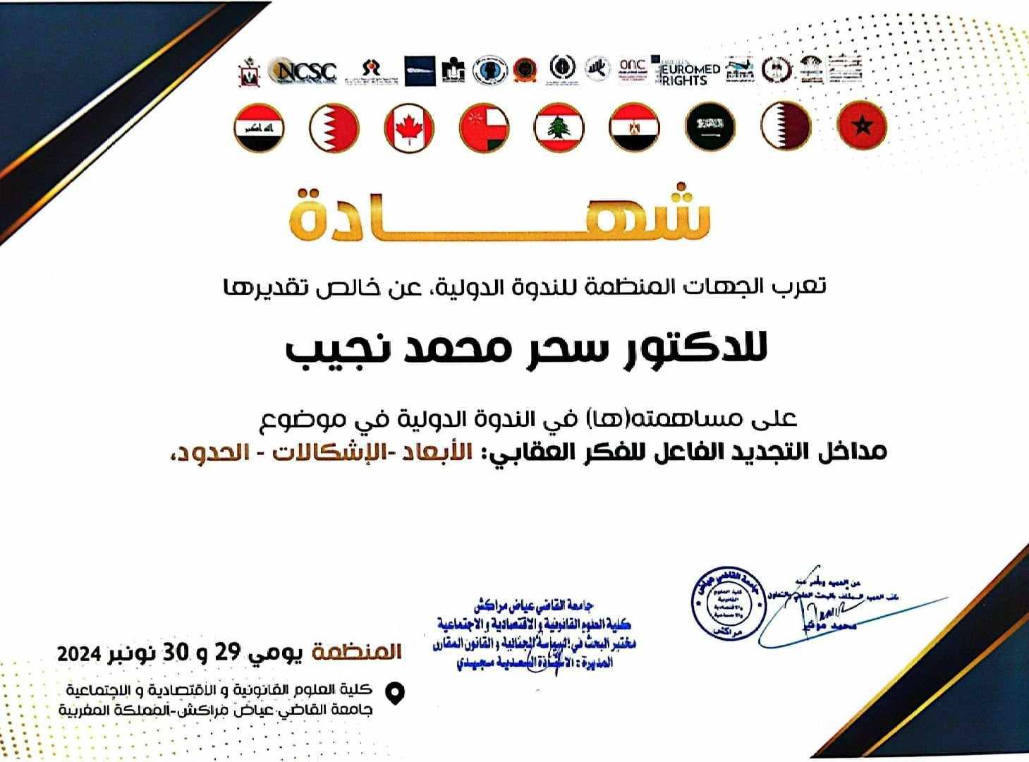 مشاركة دولية في الندوة العلمية الموسومة ( مداخل التجديد الفاعل للفكرة العقابي – الابعاد – الاشكاليات – الحدود )،،،