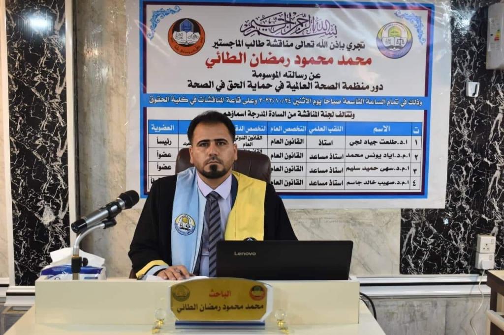 شارك الاستاذ الدكتور مصطفى ناطق صالح أحد تدريسيي فرع القانون الخاص في كلية الحقوق بجامعة الموصل في عضوية لجنة مناقشة طالبة الماجستير ملاك هادي مهدي / كلية القانون والعلوم السياسية بجامعة كركوك عن رسالتها الموسومة ( النظام القانوني لحقوق المستثمر/دراسة مقارنة) وقد اجازت لجنة المناقشة رسالة الطالبة كجزء من متطلبات نيل شهادة الماجستير في القانون الخاص ، وتعبر هذه المشاركة عن الرصانة العلمية والمكانة الأكاديمية المرموقة التي يحظى بها اساتذة وتدريسيي كليتنا العزيزة وجامعتنا العريقة .