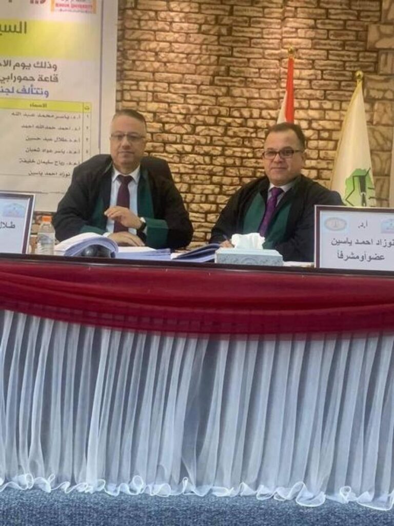 شارك الاستاذ المساعد الدكتور لقمان عثمان احمد احد تدريسيي فرع قانون حقوق الانسان في كلية الحقوق بجامعة الموصل في عضوية لجنة مناقشة طالب الماجستير محمد ناصح محمد/كلية القانون بجامعة السليمانية عن رسالته الموسومة الحماية الدستورية لمبدأ المساواة في التشريعات الجنائية/ دراسة تحليلية مقارنة ، وقد اجازت لجنة المناقشة رسالة الطالب كجزء من متطلبات نيل شهادة الماجستير في القانون العام ، وتعبر هذه المشاركة عن الرصانة العلمية والمكانة الاكاديمية المرموقة التي يحظى بها اساتذة وتدريسيي كليتنا العزيزة وجامعتنا العريقة .
