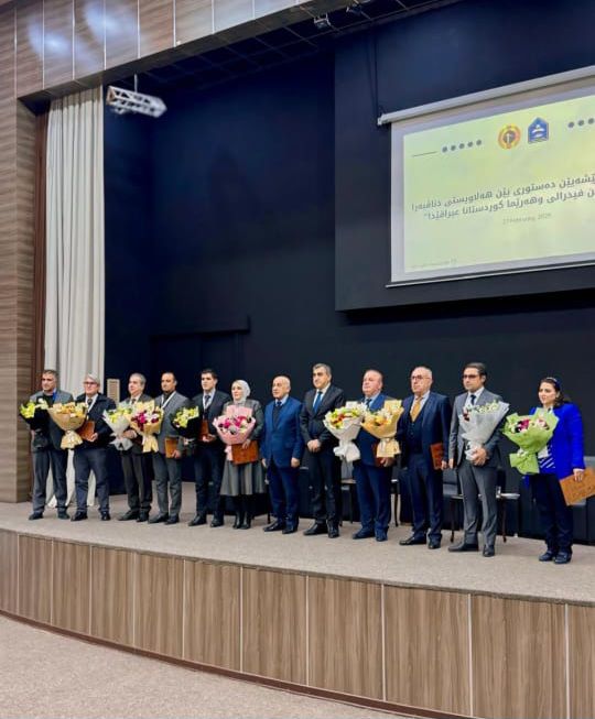 شاركت الدكتورة سيفان باكراد ميسروب إحدى تدريسيات فرع القانون العام في كلية الحقوق بجامعة الموصل في اعمال الندوة العلمية الموسومة الإشكاليات والقضايا الدستورية العالقة بين السلطات الاتحادية وإقليم كردستان التي أقامها مركز البحوث القانونية والسياسية بجامعة دهوك بالتعاون مع مركز البحوث الفيديرالية في جامعة دهوك ، وقد تمثلت المشاركة بالورقة البحثية الموسومة تعديل الدستور الفيديرالي في ظل التوازن بين السلطات الاتحادية والإقليم ، وتأتي هذه المشاركة ضمن سلسلة الانشطة العلمية والبحثية والثقافية والطلابية لمنتسبي كليتنا بما يساهم في الانفتاح العلمي والتفاعلي المعرفي مع الكليات والجامعات والمؤسسات العلمية الاخرى الاخرى الوطنية والدولية .