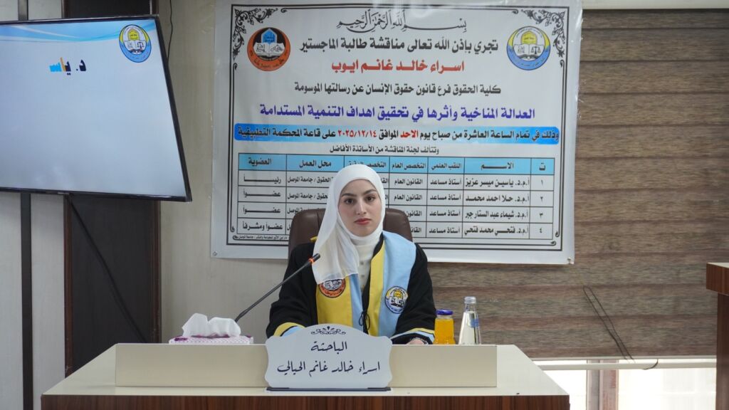 جرت ، يوم الأحد الموافق 14 كانون الاول 2025، في كلية الحقوق مناقشة رسالة الماجستير الموسومة