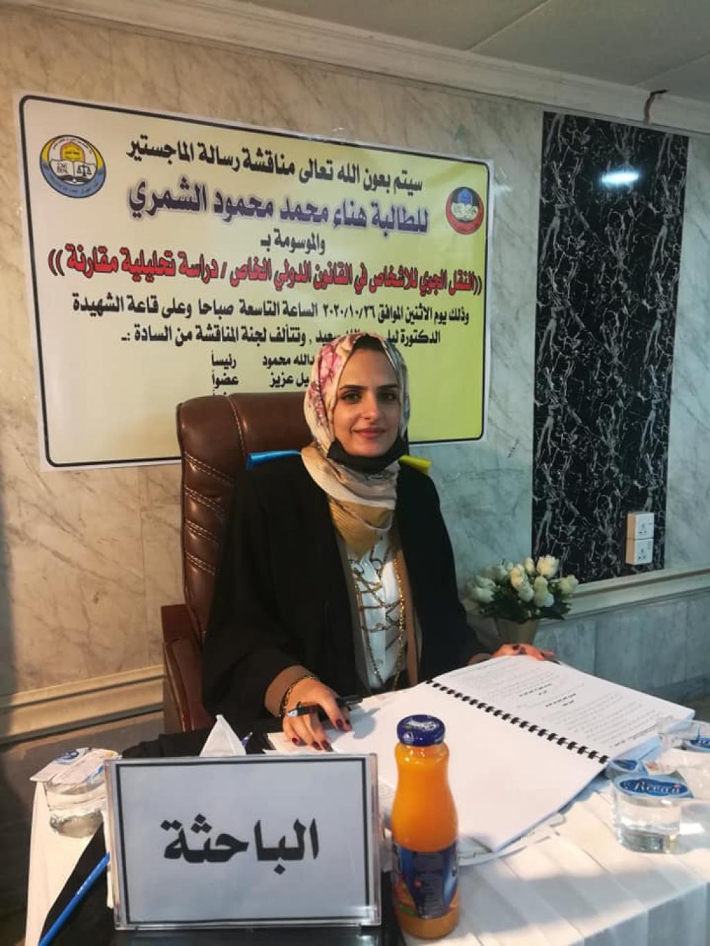 مناقشة طالبة الماجستير هناء محمد محمود في فرع القانون الخاص – كلية الحقوق