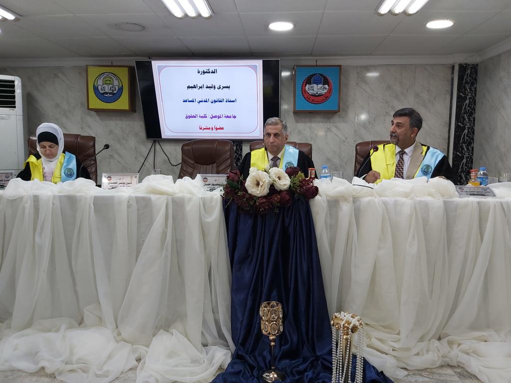 جرت على قاعة الشهيدة الدكتورة ليلى عبدالله سعيد/ كلية الحقوق مناقشة طالب الماجستير (اكرم عبدالوهاب عبدي) في فرع القانون الخاص يوم الاربعاء 2/10/2019 الساعة التاسعة صباحا عن رسالته الموسومة(التبرع بالأعضاء البشرية من الاحياء الى الاموات) .