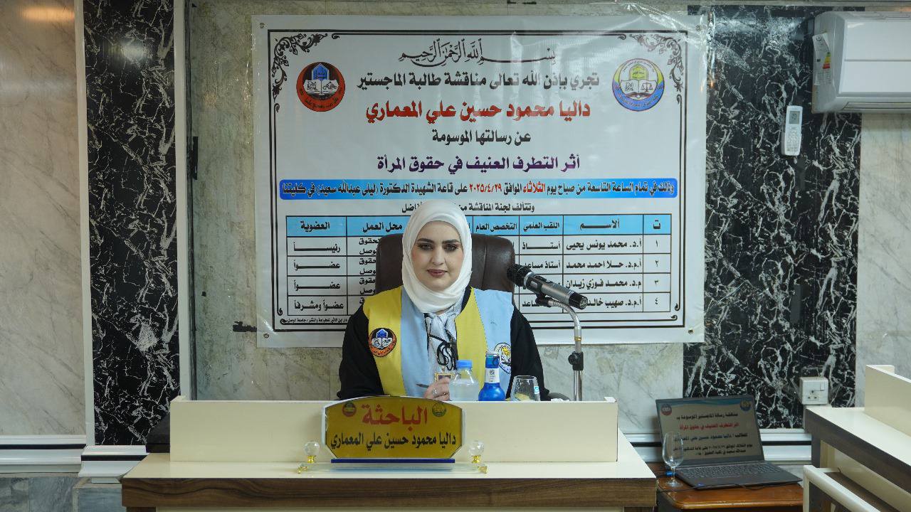ناقش فرع قانون حقوق الانسان في كلية الحقوق بجامعة الموصل يوم الثلاثاء الموافق ٢٩ نيسان ٢٠٢٥ رسالة ماجستير عن أثر التطرف العنيف على حقوق المرأة ، حضر جانبا منها الاستاذ الدكتور عبدالعزيز رمضان علي عميد كلية الحقوق وعددا من اعضاء مجلس الكلية وتدريسييها .
