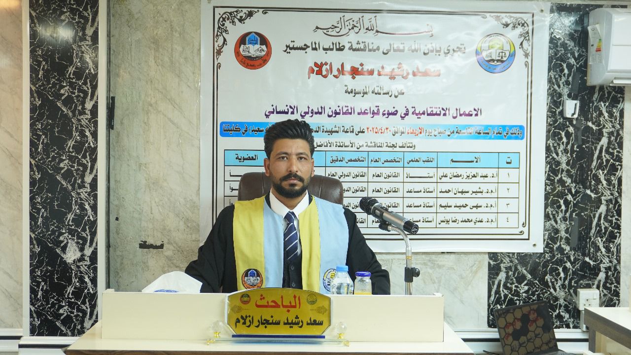 ناقش فرع قانون حقوق الانسان في كلية الحقوق بجامعة الموصل يوم الاربعاء الموافق ٣٠ نيسان ٢٠٢٥ رسالة ماجستير عن الاعمال الانتقامية في ضوء قواعد القانون الدولي الانساني ، حضر جانبا منها عددا من اعضاء مجلس الكلية وتدريسييها .