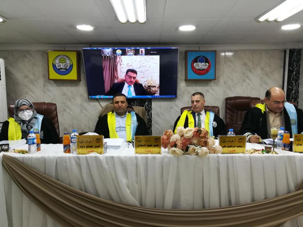 بحضور الدكتور وسام نعمت ابراهيم السعدي المحترم عميد الكلية وعدد من اعضاء مجلس الكلية فقد جرت في كليتنا يوم الاربعاء الموافق 2020/10/7 مناقشة طالب الدكتوراه في فرع القانون الخاص ثامر اسماعيل حسين عند اطروحته الموسومة (النظام القانوني لصناديق الثروة السيادية/دراسة مقارنة) باشراف الدكتورة نسيبة ابراهيم حمو ، وقد ضمت لجنة المناقشة كلا من الدكتور عقيل مجيد السعدي /كلية القانون جامعة كربلاء رئيسا وعضوية كلا من الدكتور مصطفى ناطق صالح والدكتور مهند ابراهيم فندي والدكتور ايسر عصام داؤد /كلية الحقوق جامعة الموصل والدكتور مدحت صالح غائب /كلية الحقوق جامعة تكريت ، وقد توصل الباحث الى عدد من النتائج كان في مقدمتها ، ان صناديق الثروة السيادية عبارة عن صناديق استثمار حكومية مستقلة ذات طبيعة خاصة تستثمر الفوائض المالية للدولة باستثمارات متنوعة محليا ودوليا لتحقيق أهداف متعددة ، كما ان الطبيعة القانونية لهذه الصناديق عبارة عن نوعا هجينا مشتركا بين العام والخاص ويجمع بين المؤسسات الحكومية والخاصة وهي بذلك تمتلك هوية خاصة تميزها عن غيرها من المؤسسات المالية والاستثمارية ، وفي ختام المناقشة قبلت اللجنة اطروحة الطالب وتم منحه شهادة الدكتوراه في القانون الخاص