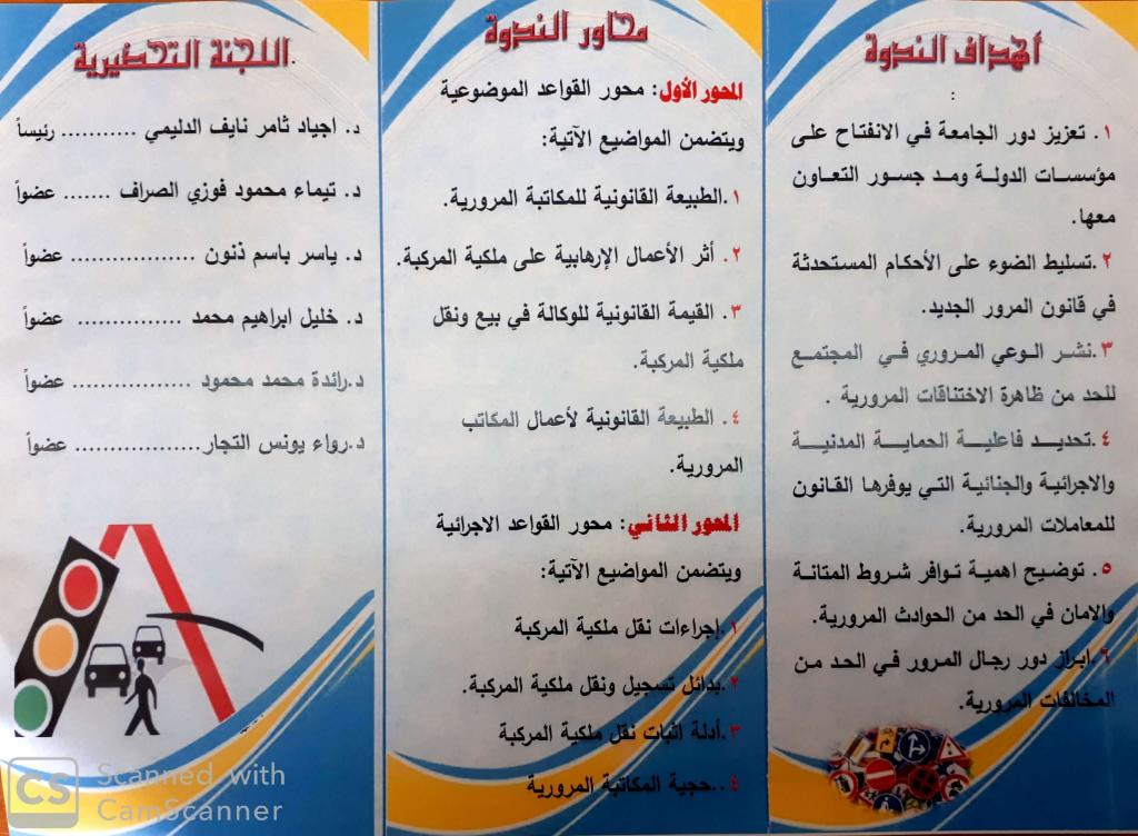 ندوة علمية لفرع القانون الخاص بعنوان ( القواعد الموضوعية والاجرائية في قانون المرور الجديد)
