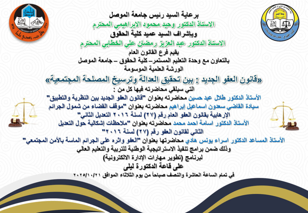 أقامت وحدة التأهيل والتوظيف والمتابعة في كلية الحقوق ورشة تأهيلية بعنوان “عريضة الدعوى المدنية والجزائية مفتاح للعمل الإجرائي القضائي”، قدّمها الدكتور صدام خزعل يحيى.