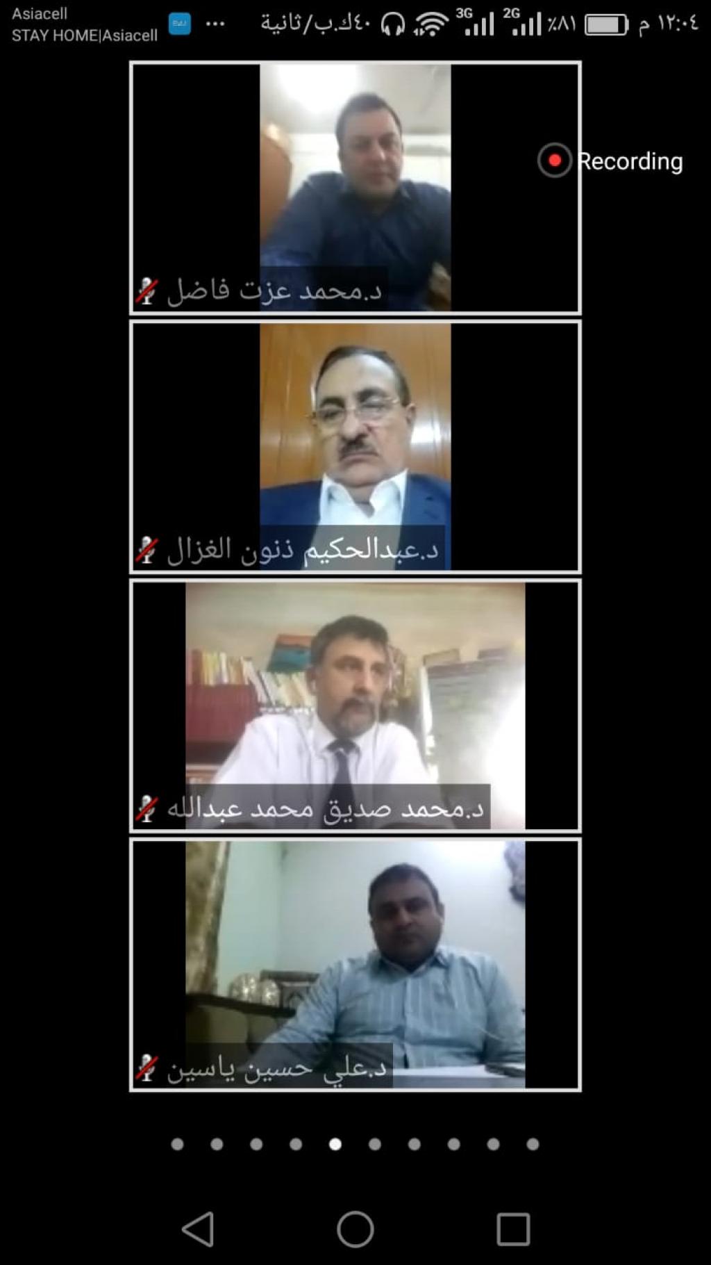 برعاية الاستاذ الدكتور قصي كمال الدين الاحمدي المحترم رئيس جامعة وباشراف ومتابعة الأستاذ الدكتور عمار سعدون حامد المحترم عميد الكلية وضمن سلسلة ورش العمل الالكترونية وباستخدام التقنيات الالكترونية وبرنامج zoom فقد اقام فرع القانون العام في كليتنا يوم الخميس الموافق 2020/4/2 ورشة عمل الكترونية افتراضية بعنوان(الاوضاع القانونية الناشئة عن تداعيات الازمة الصحية لفايروس كورونا)