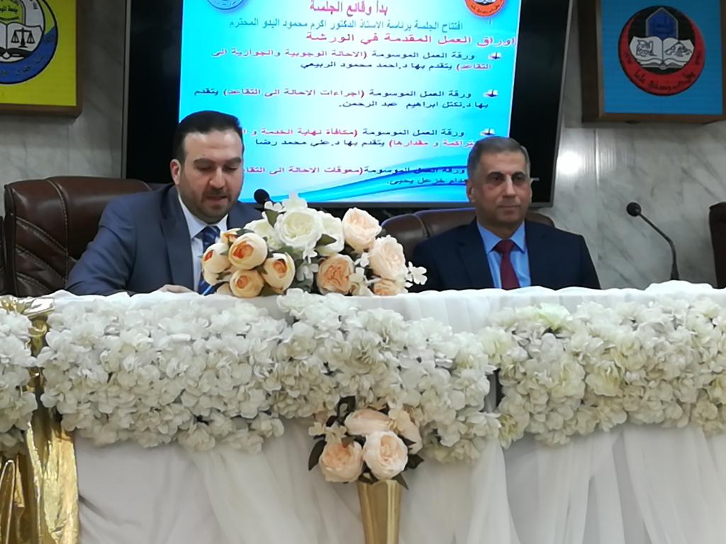 ورشة عمل بعنوان (قانون التعديل الاول لقانون التقاعد الموحد رقم 9 لسنة 2014المرقم 26 لسنة 2019بين الواقع والطموح )