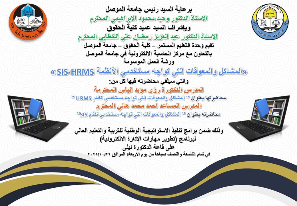 شارك مُنتسبيِن من كلية الحقوق جامعة الموصل في ورشة علمية حول نظام معلومات التدريسين والطلبة SIS في كلية القانون - جامعة الحمدانية بعنوان " نظام [إقرأ المزيد]