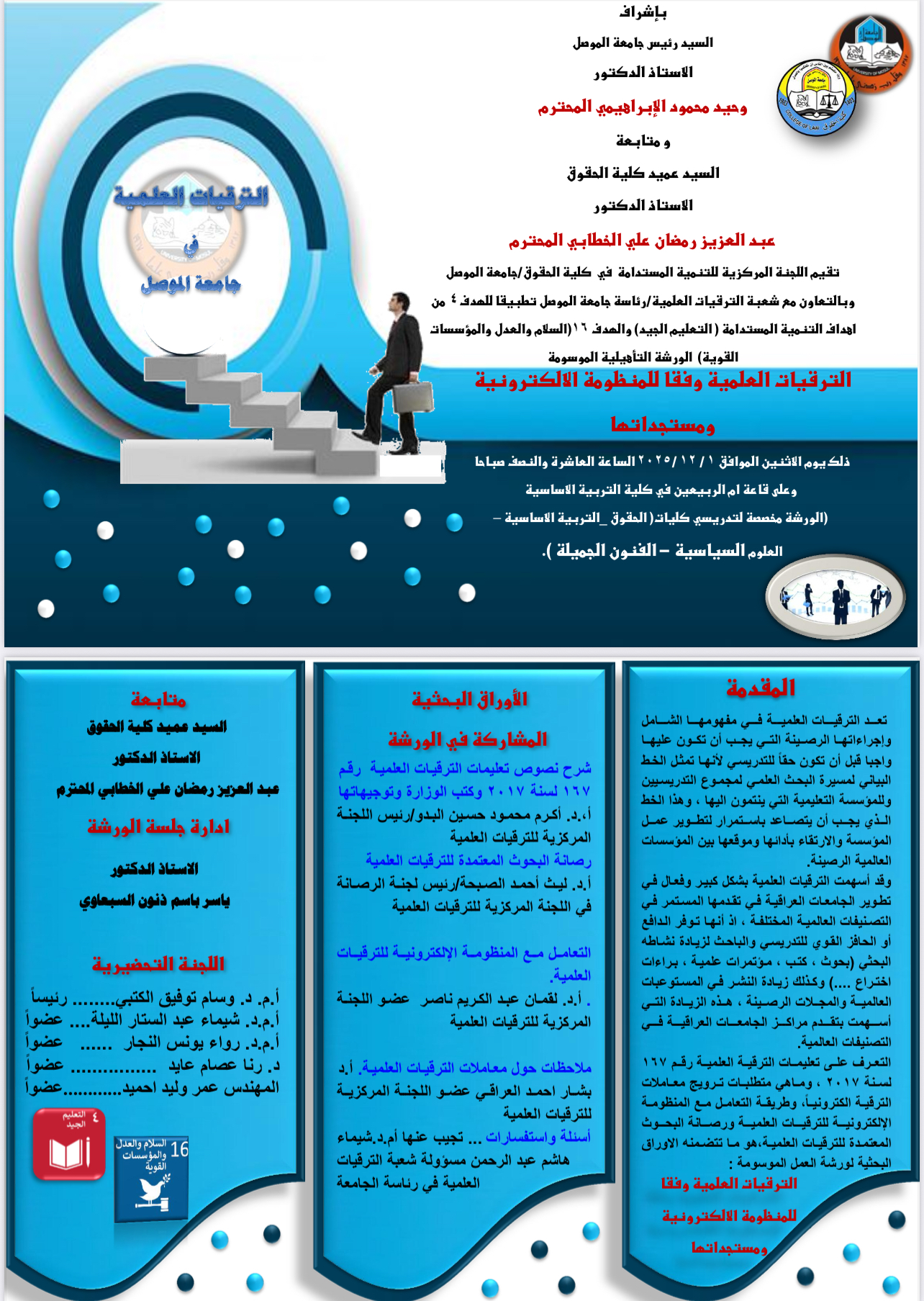 ورشة علمية بعنوان (المركز القانوني للمحامي) في كلية الحقوق بجامعة الموصل أقامت وحدة التعليم المستمر في كلية الحقوق / جامعة الموصل، صباح يوم الأحد الموافق [إقرأ المزيد]