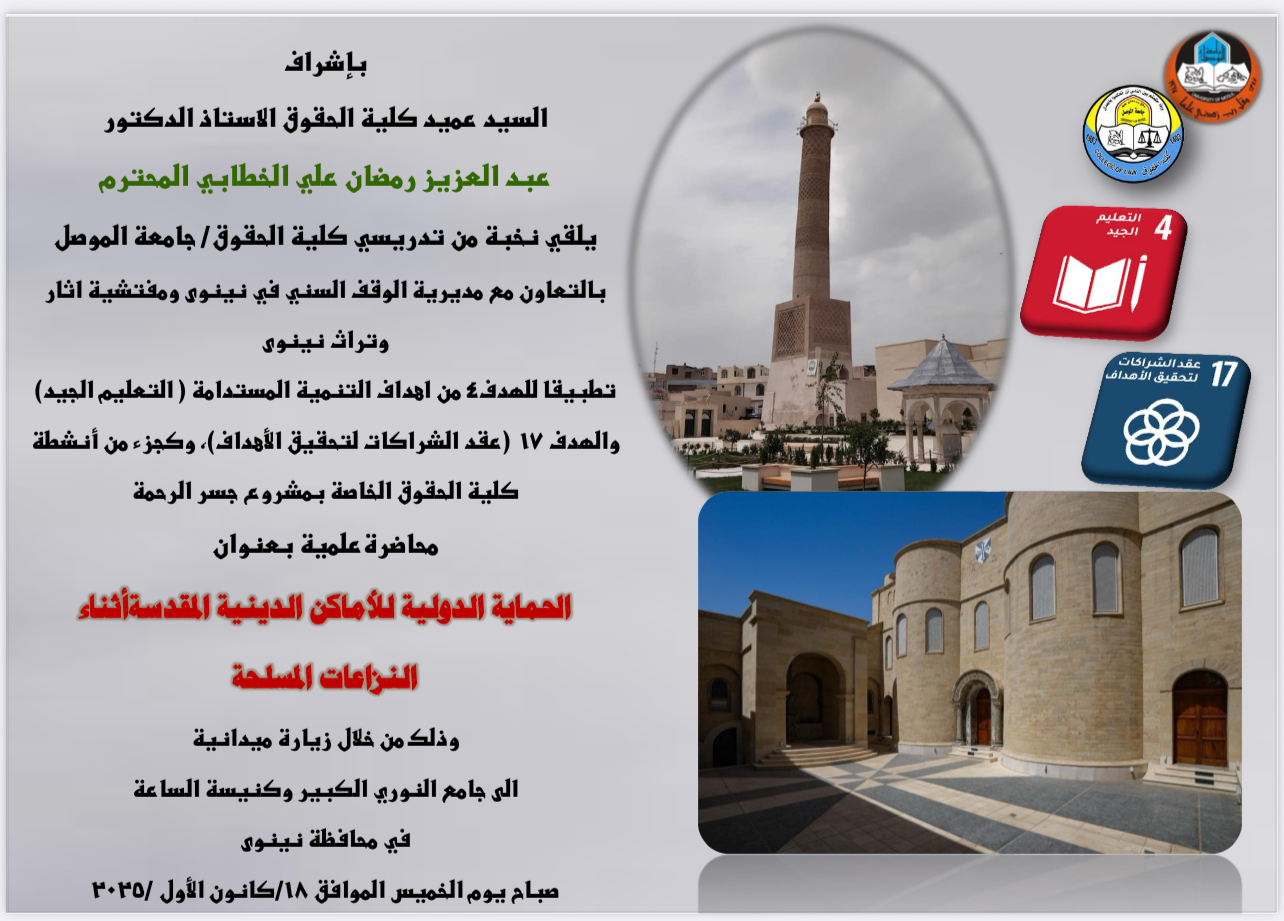 استقبل الاستاذ المساعد الدكتور وسام نعمت ابراهيم السعدي عميد كلية الحقوق بجامعة الموصل يوم الاثنين الموافق ٢٩ كانون الثاني ٢٠٢٤ ، وفد العتبة العباسية المقدّسة مثنياً على الجهود الحثيثة التي تقدمها العتبة العباسية المقدسة في المجالات العلمية والثقافية والمجتمعية كافةً