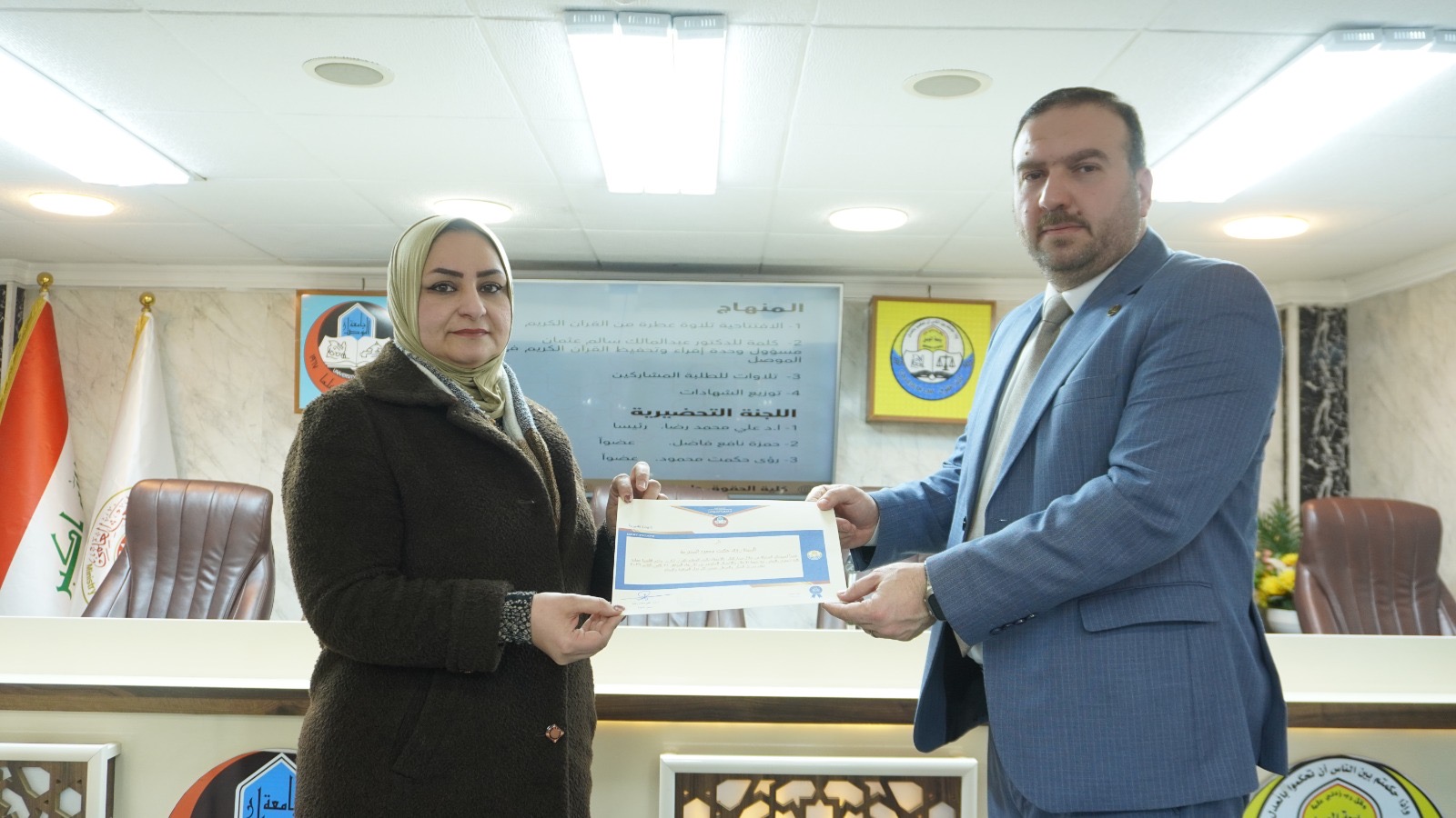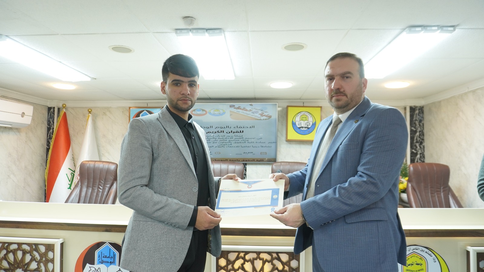 اقامت عمادة كلية الحقوق في جامعة الموصل، وبالتعاون مع شعبة الإعلام والاتصال الحكومي وبالتعاون مع قسم الدراسات والتخطيط / وحدة التنمية المستدامة في رئاسة جامعة الموصل صباح يوم الثلاثاء الموافق 21/1/2026 نشاطاً دينياً ثقافياً بمناسبة اليوم الوطني للقرآن الكريم، وذلك في تمام الساعة 10:00 صباحاً.