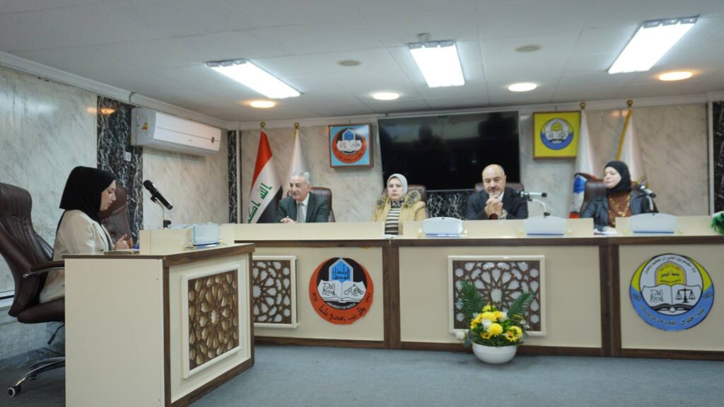 برئاسة الدكتورة ضحى محمد سعيد وعضوية الدكتور حبيب ادريس عيسى والدكتورة رائدة محمد محمود ، فقد اجتمعت يوم الثلاثاء الموافق ١٧ كانون الاول ٢٠٢٤ لجنة السيمنارات لفرع القانون الخاص وجرى مناقشة مشروع تسجيل رسالة طالب الماجستير انمار عبداللطيف يوسف بإشراف الدكتور نزار حازم محمد وحضور اعضاء الهيئة التدريسية للفرع ، وبعد الاطلاع على اهمية الدراسة وهيكليتها واشكاليتها أوصت اللجنة بقبول تسجيل العنوان بعد ادخال بعض التعديلات عليه ، علما ان دراسة الطالب في فرع القانون الخاص .